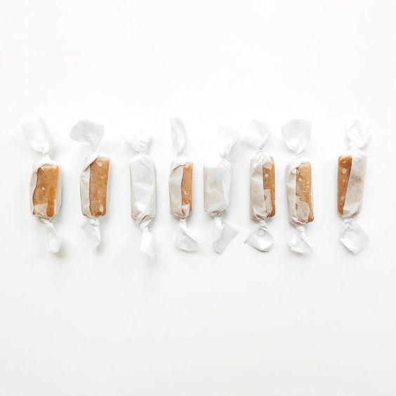 The logo presents a minimalistic design that is instantly recognizable as a toffee. An uneven cut on the top, combined with two eyes, gives it a lively and animated appearance.